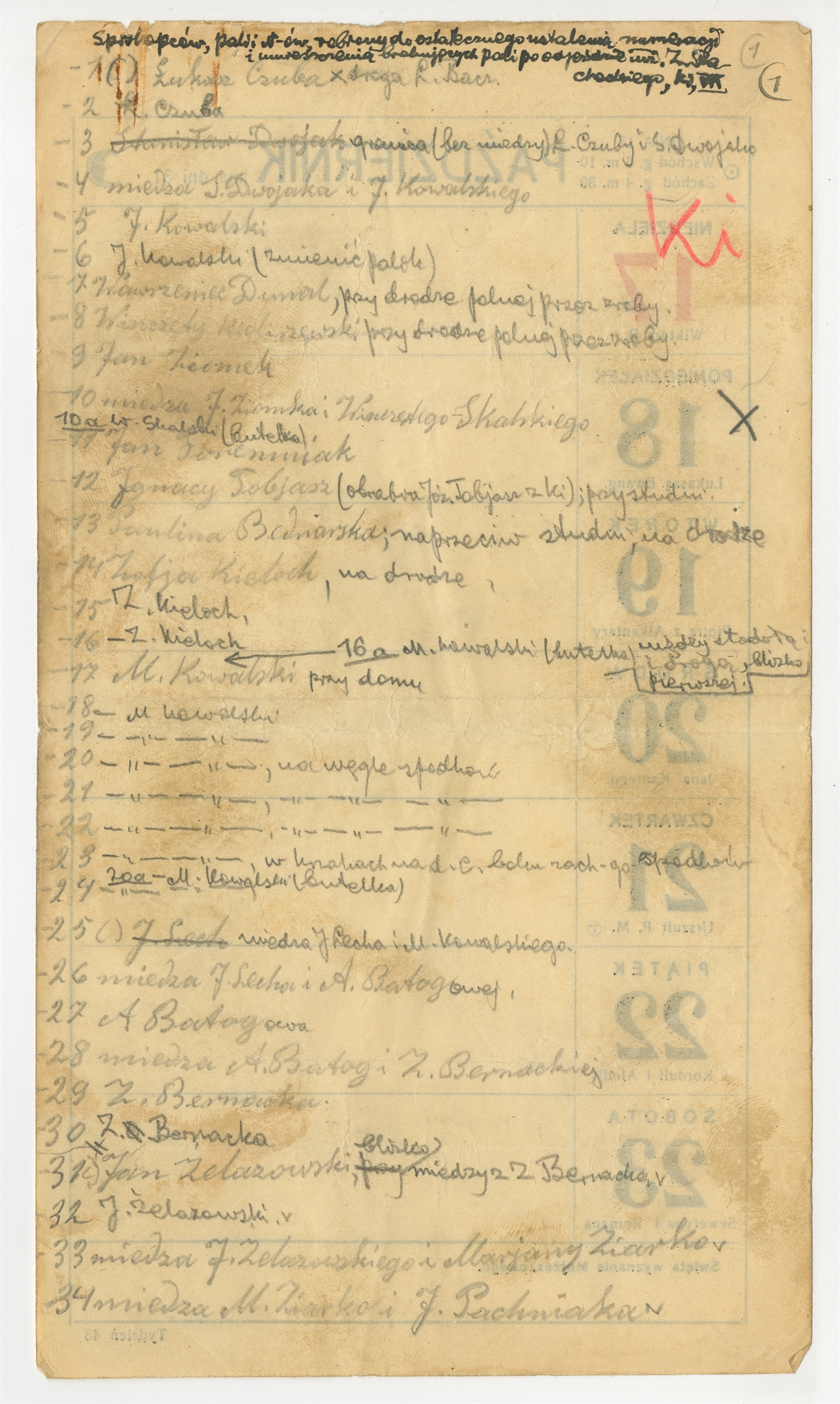 Rękopis "Spisu kopców pali i N-ów robionych do ostatecznego ustalenia numeracji i umieszczenia brakujących pali po odejściu inż. Z. Pachockiego [?] ki VII [?] ..."