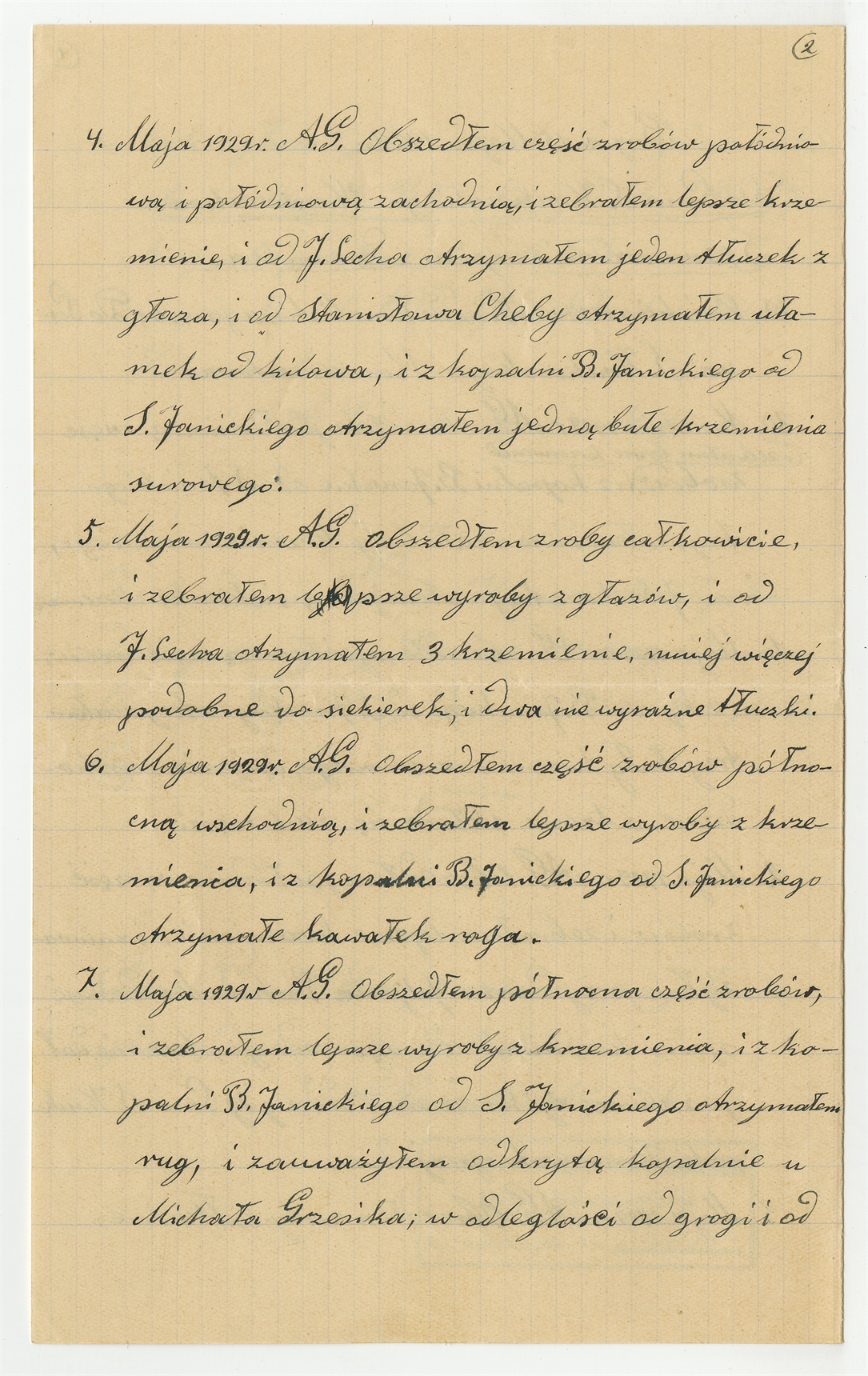 Rękopis - sprawozdanie strażnika Krzemionek A. Gromka z dnia 15 maja 1929 roku z okresu 29 kwietnia - 15 maja 1929 roku - strona 2