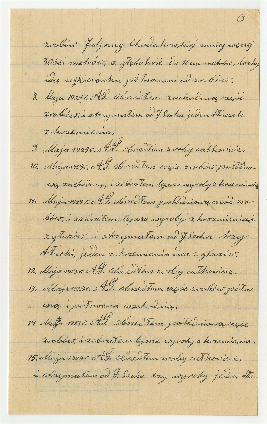 Rękopis - sprawozdanie strażnika Krzemionek A. Gromka z dnia 15 maja 1929 roku z okresu 29 kwietnia - 15 maja 1929 roku - strona 3