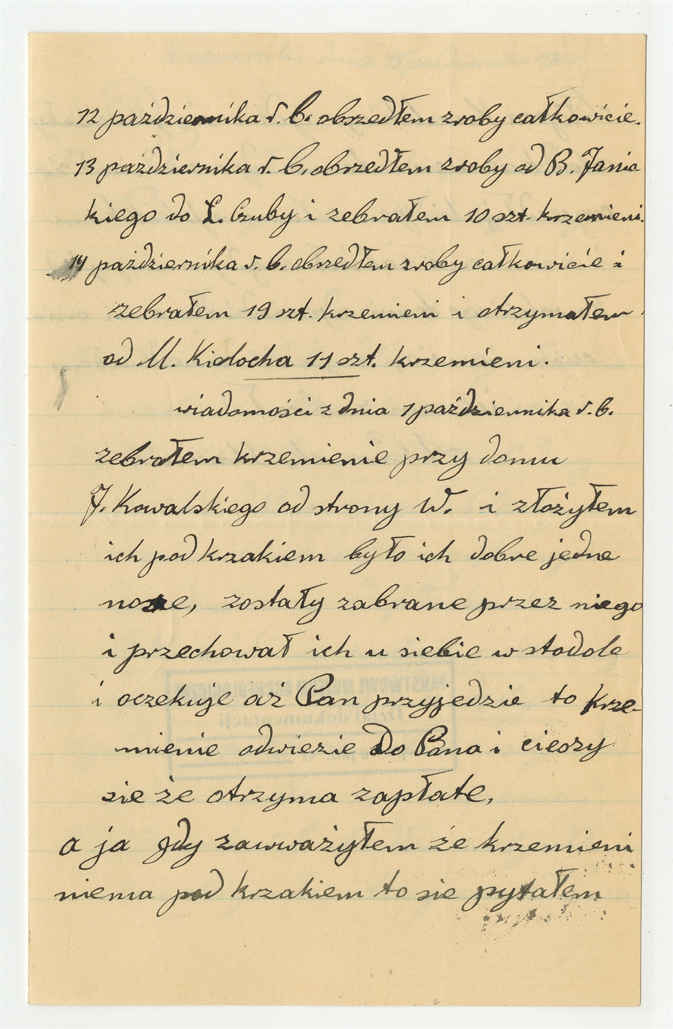 Rękopis - sprawozdanie strażnika Krzemionek A. Gromka z dnia 15 października 1930 roku z okresu 2 - 14 października 1930 roku (cd)