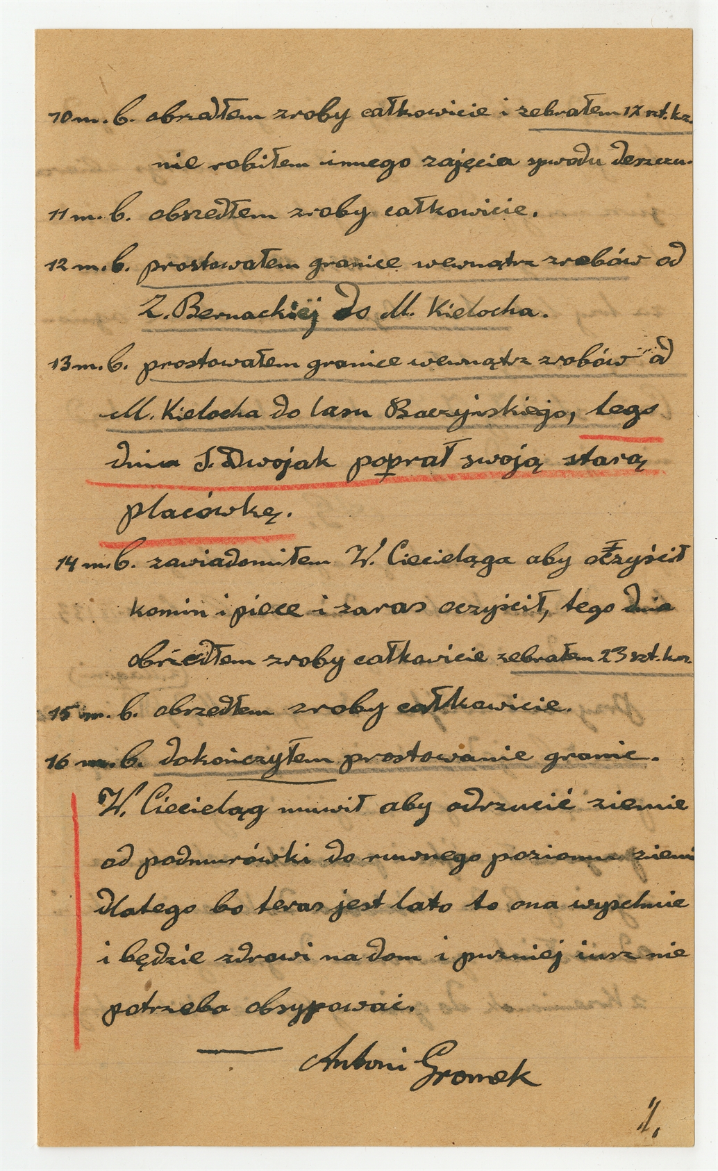 Rękopis - sprawozdanie strażnika Krzemionek A. Gromka z dnia 17 czerwca 1933 roku z okresu 3 - 16 czerwca 1933 roku (cd)
