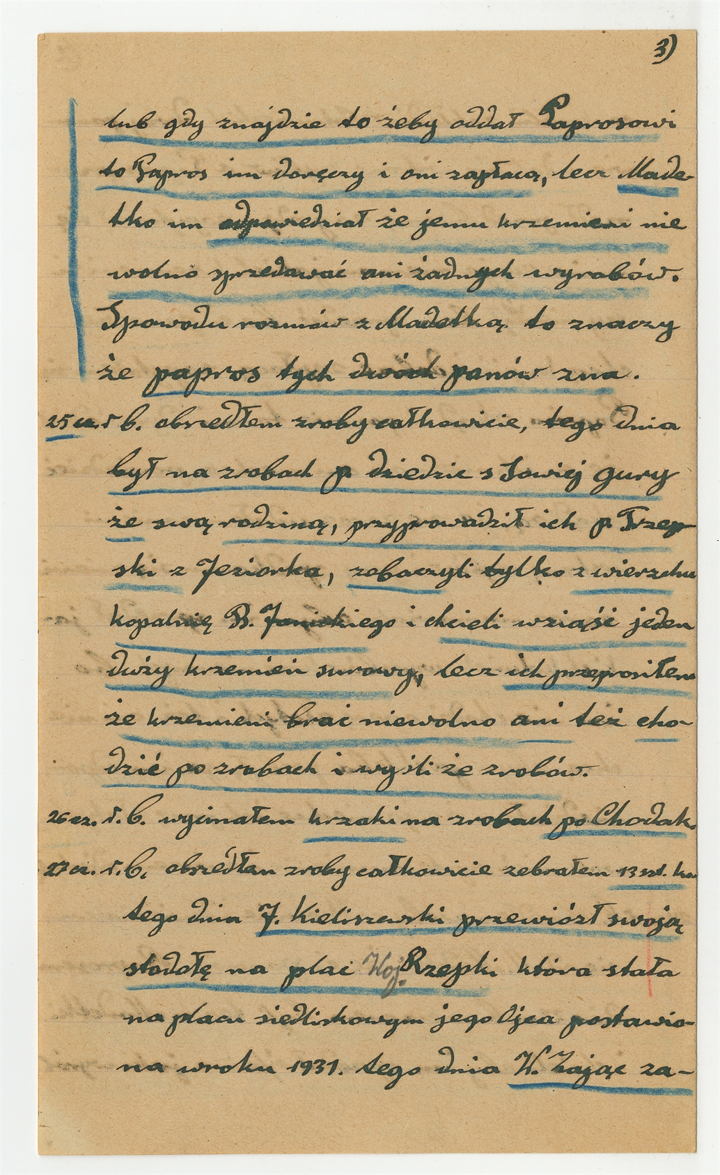 Rękopis - sprawozdanie strażnika Krzemionek A. Gromka z dnia 1lipca 1933 roku z okresu 17 - 30 czerwca 1933 roku - strona 3
