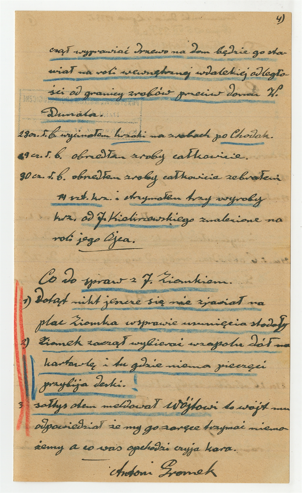 Rękopis - sprawozdanie strażnika Krzemionek A. Gromka z dnia 1lipca 1933 roku z okresu 17 - 30 czerwca 1933 roku - strona 4
