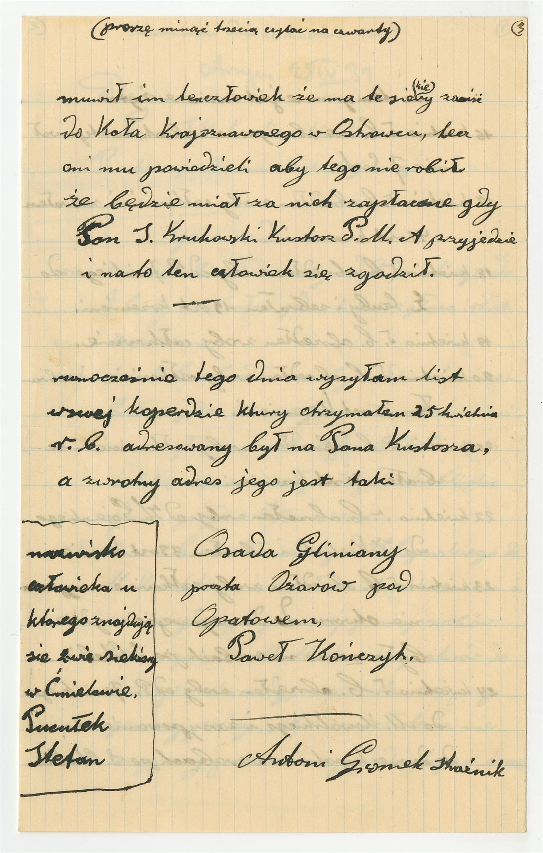 Rękopis - sprawozdanie strażnika Krzemionek A. Gromka z dnia 26 kwietnia 1931 roku z okresu 13 - 26 kwietnia 1931 roku - strona 3