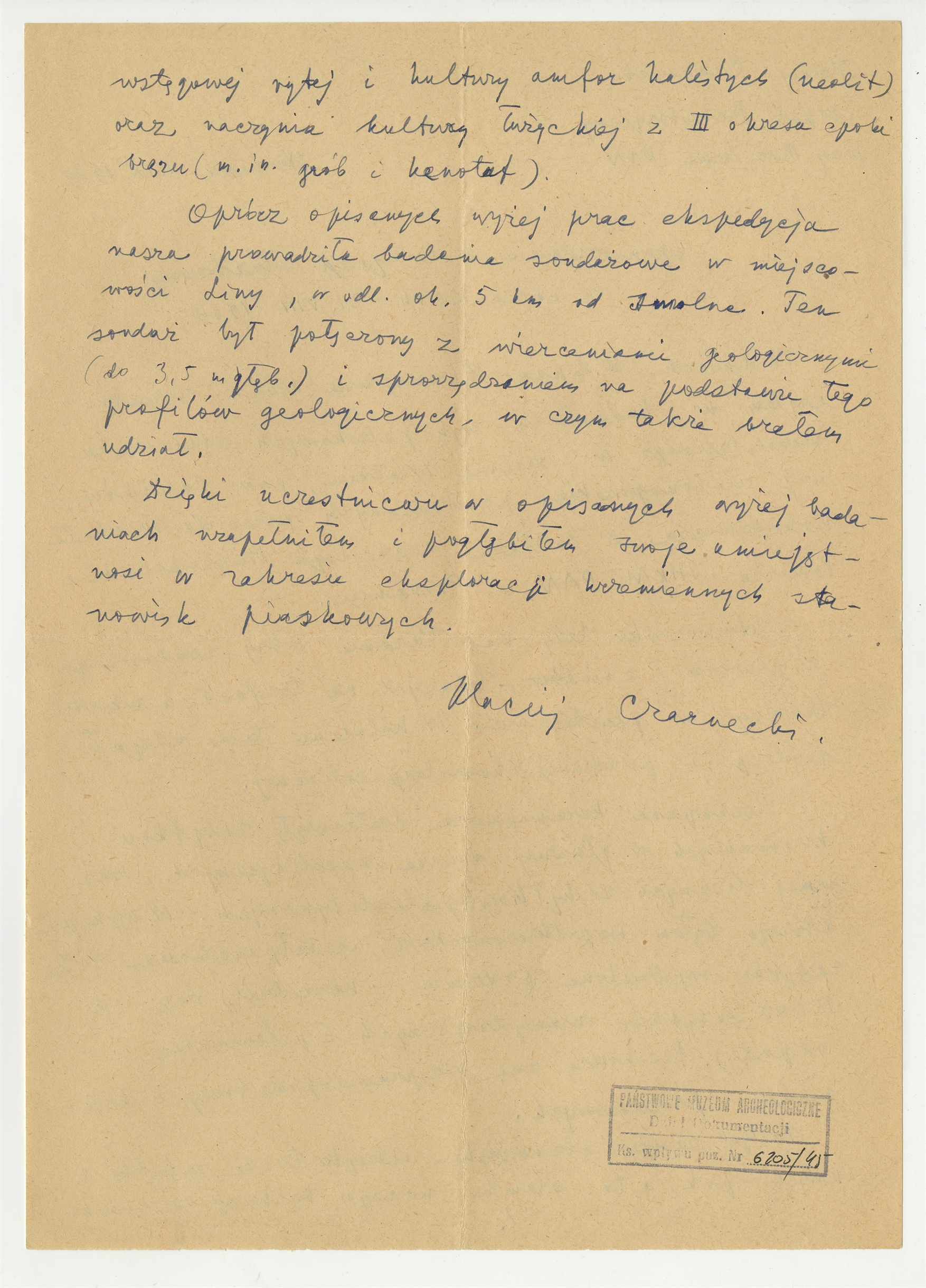 Rękopis - "Sprawozdanie z delegacji służbowej za okres 30. VII - 31. VIII 1969" sporządzonego przez Macieja Czarneckiego - strona 2: "wstęgowej rytej" … "Maciej Czarnecki" (bez numeru strony)