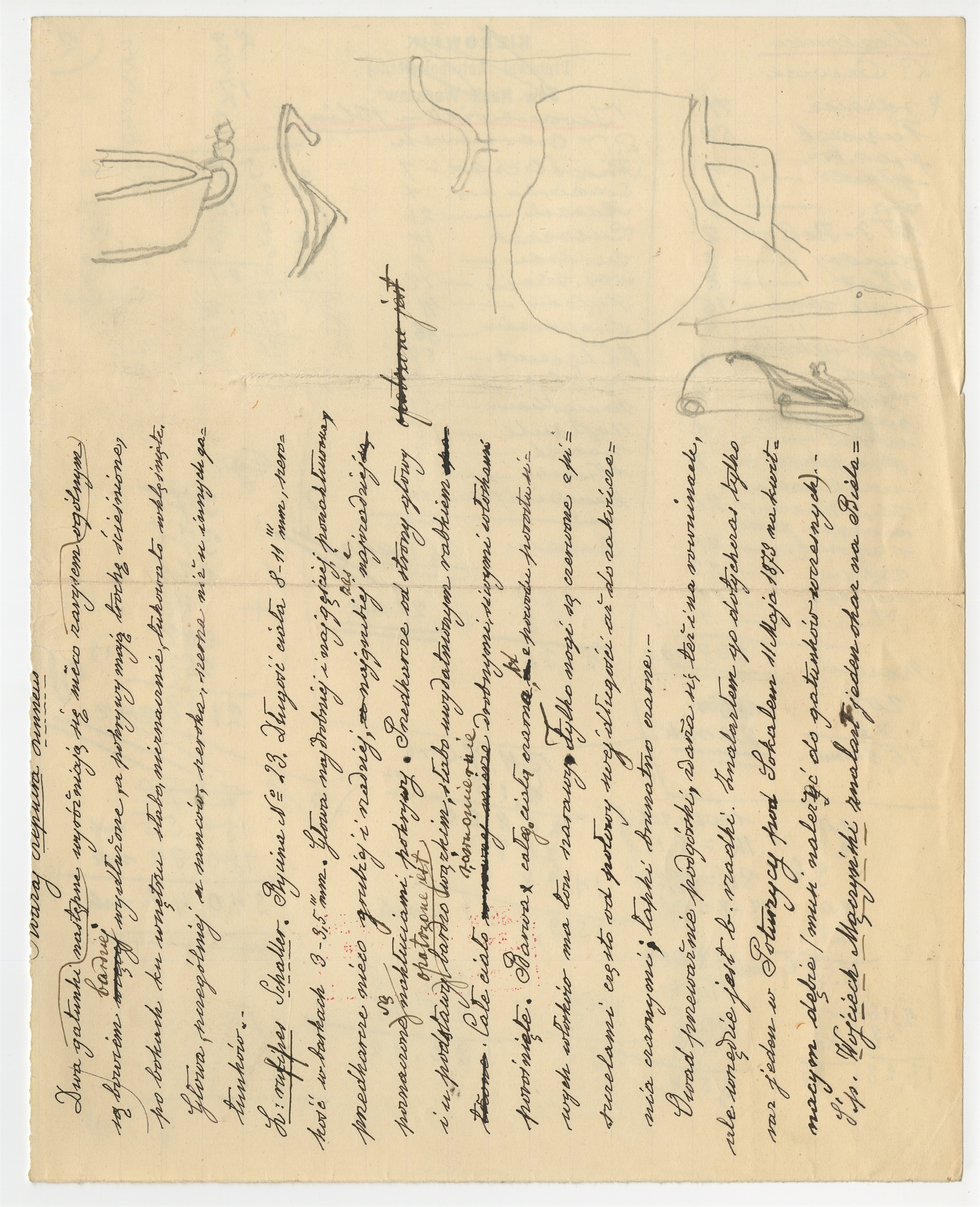 Rękopis - szkic form naczyń oraz szkic zapinki