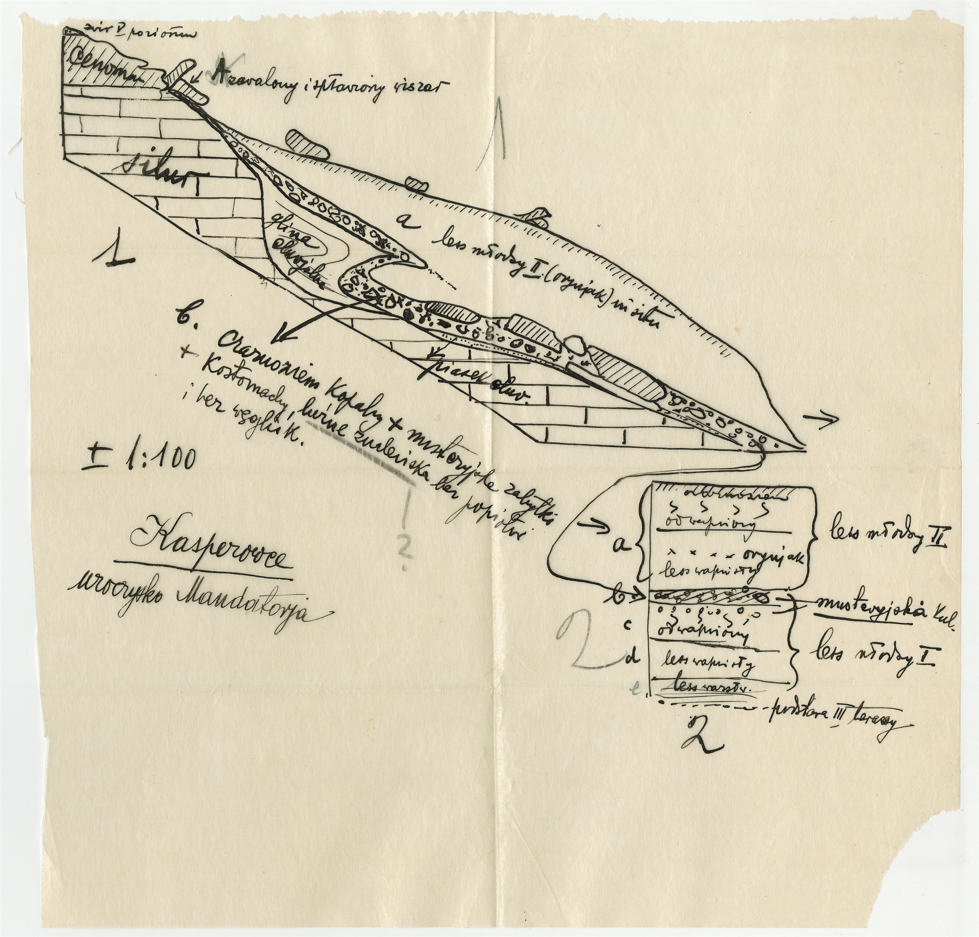 Rękopis - szkic profilu geologicznego Kasperowce