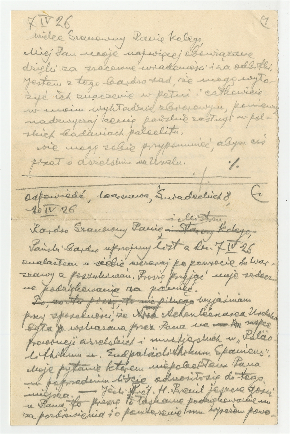 Rękopis - tłumaczenie listu ręką S.Krukowskiego (cd). Rękopis - brudnopis odpowiedzi Stefana Krukowskiego w języku polskim (cd) oraz w języku niemieckim na list