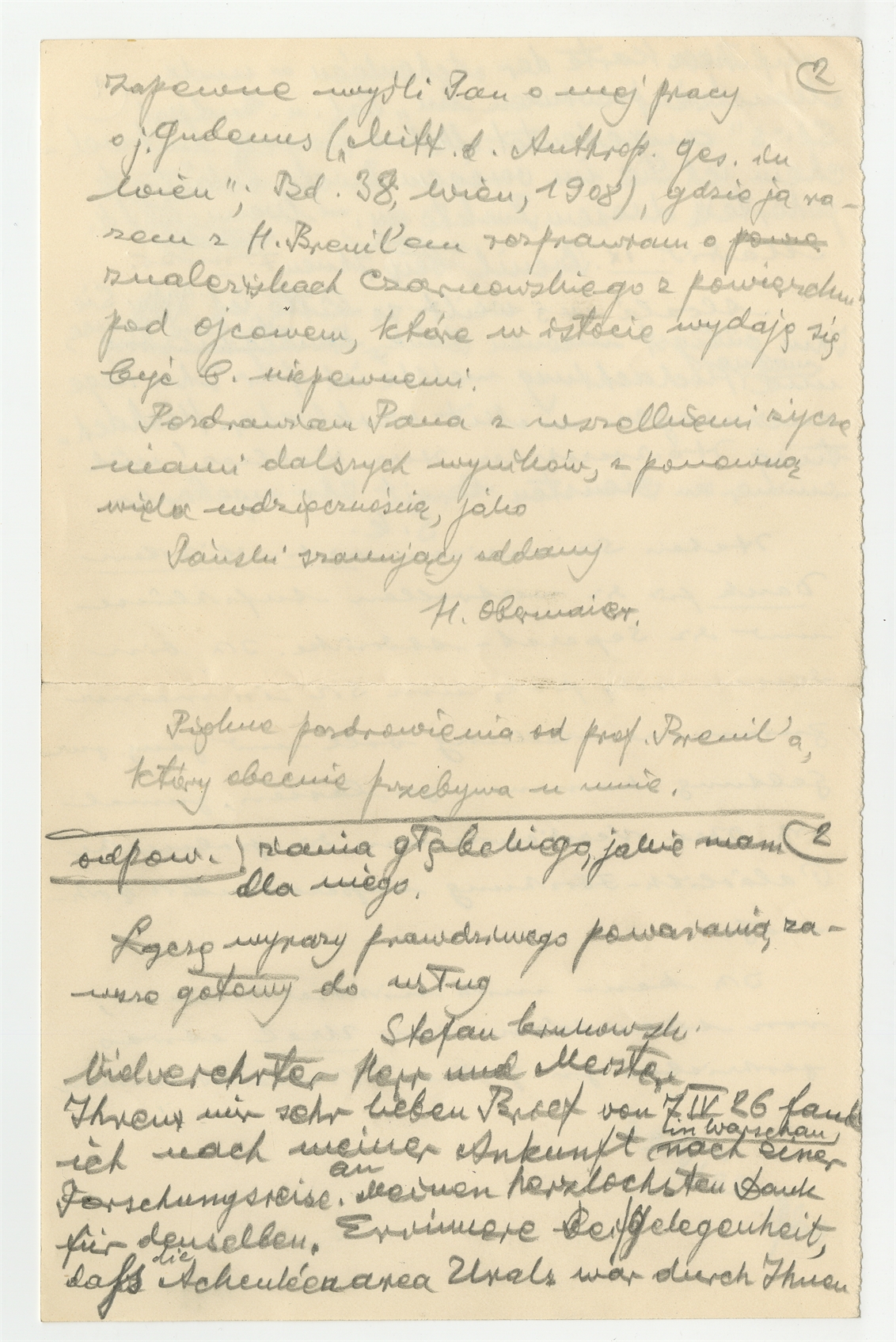 Rękopis - tłumaczenie listu ręką S.Krukowskiego. Rękopis - brudnopis odpowiedzi Stefana Krukowskiego w języku polskim na list