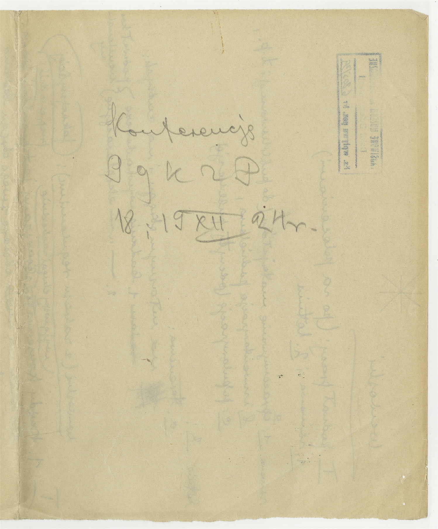 Rękopis wniosków z konferencji Państwowego Grona Konserwatorów Zabytków Przedhistorycznych która odbyła się 18-19 grudnia 1924 r. - strona 1: tytułowa