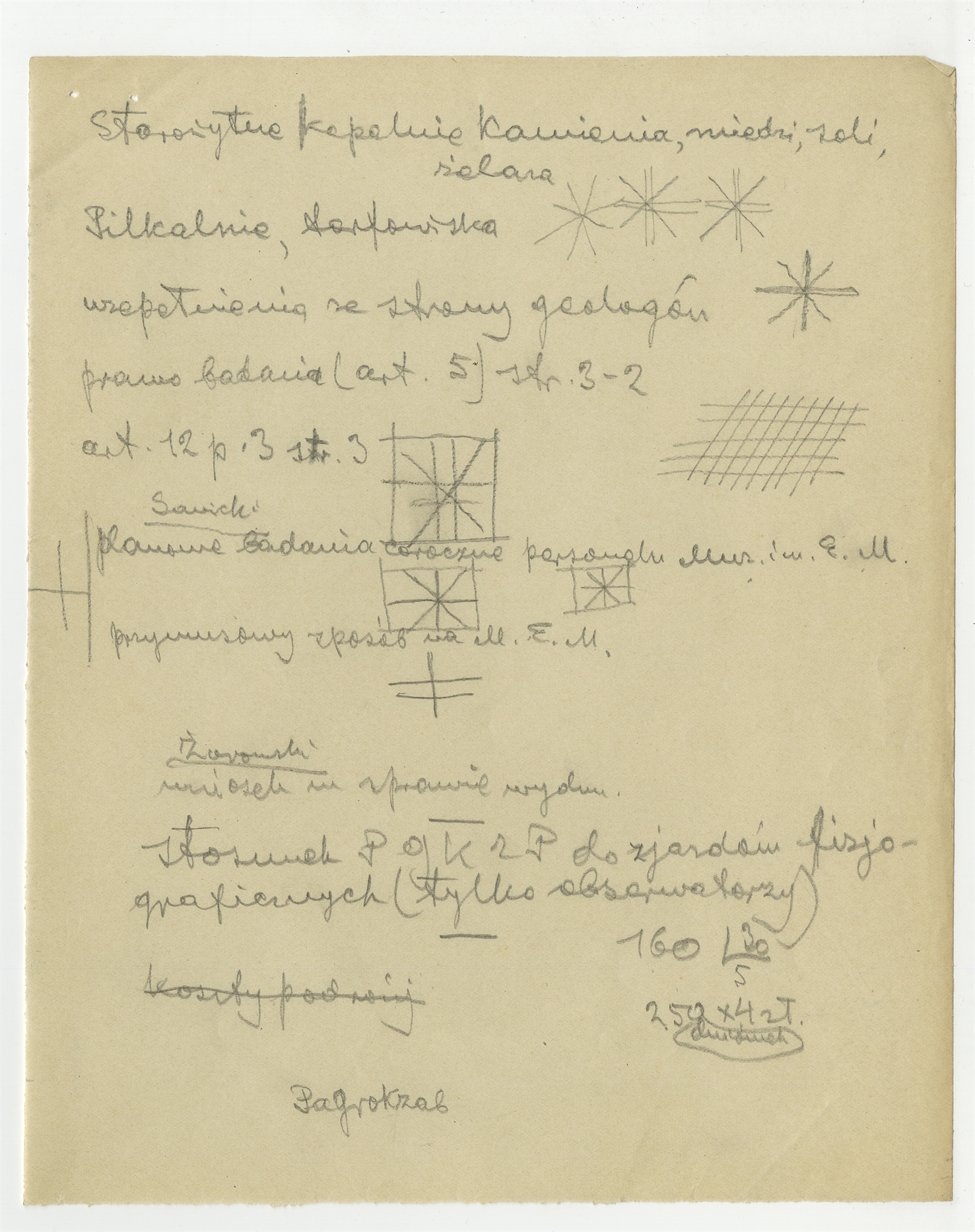 Rękopis wniosków z konferencji Państwowego Grona Konserwatorów Zabytków Przedhistorycznych która odbyła się 18-19 grudnia 1924 r. - strona 6: "Starożytne kopalnie kamienia miedzi soli żelaza (…)"