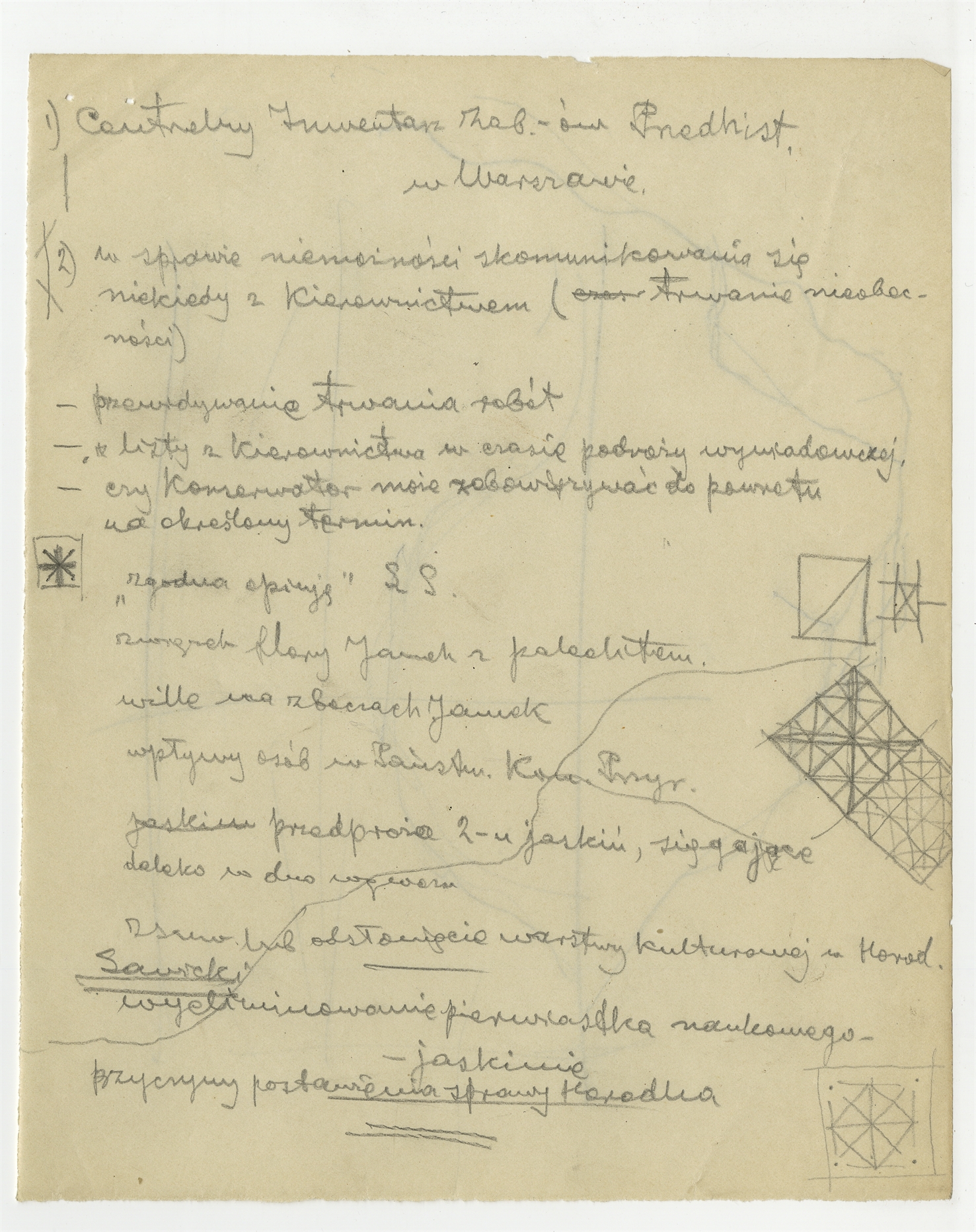 Rękopis wniosków z konferencji Państwowego Grona Konserwatorów Zabytków Przedhistorycznych która odbyła się 18-19 grudnia 1924 r. - strona 7: "1) Centralny Inwentarz Zab.-ów Przedhistorycznych w Warszawie (…)
