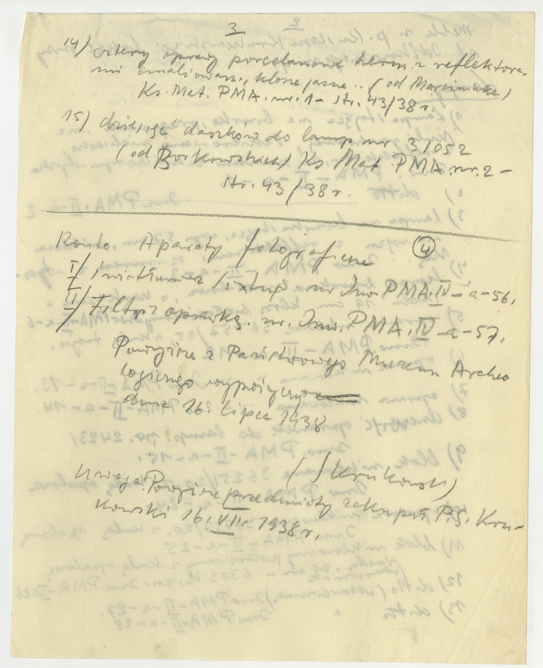 Rękopis - wykaz mebli w lokalu przy ul. Idźkowskiego 4 (lampy-cd) kopia pokwitowania za aparaty fotograficzne
