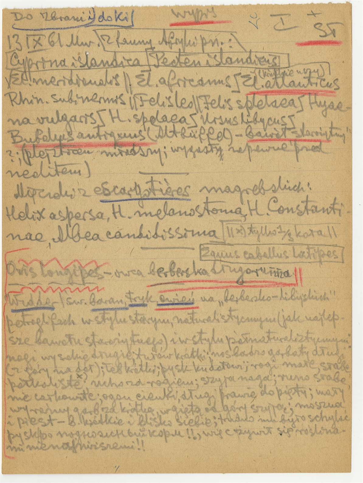 Rękopis wypisów pt. "Z fauny Afryki pn." - strona 1: "Cyprina islandica" […] "Widder
