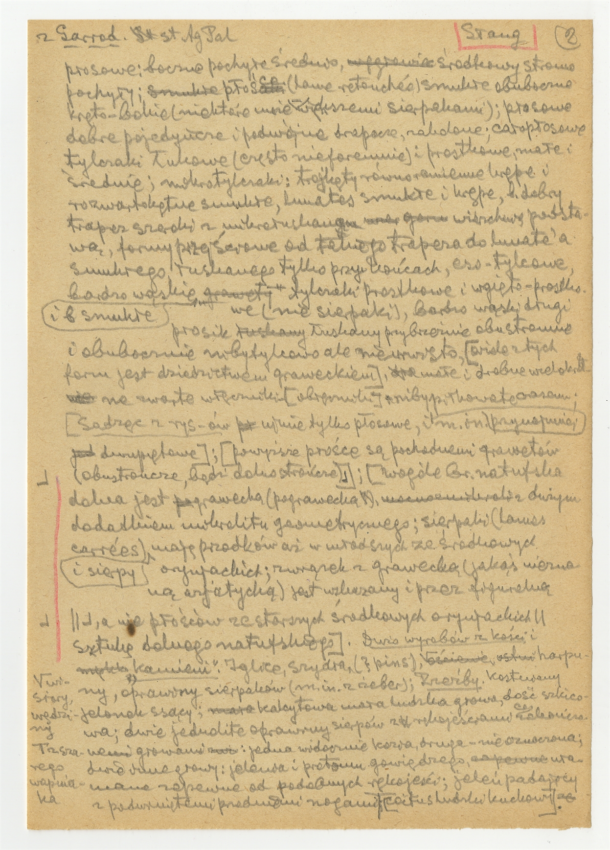 Rękopis wypisów z publikacji D. A .E Garrod'a The Stone Age of Palestine "Antiquity" 1934 s. 133-150 - strona 3: "(…) boczne pochyłe średnio środkowy stromo pochyły (…)"