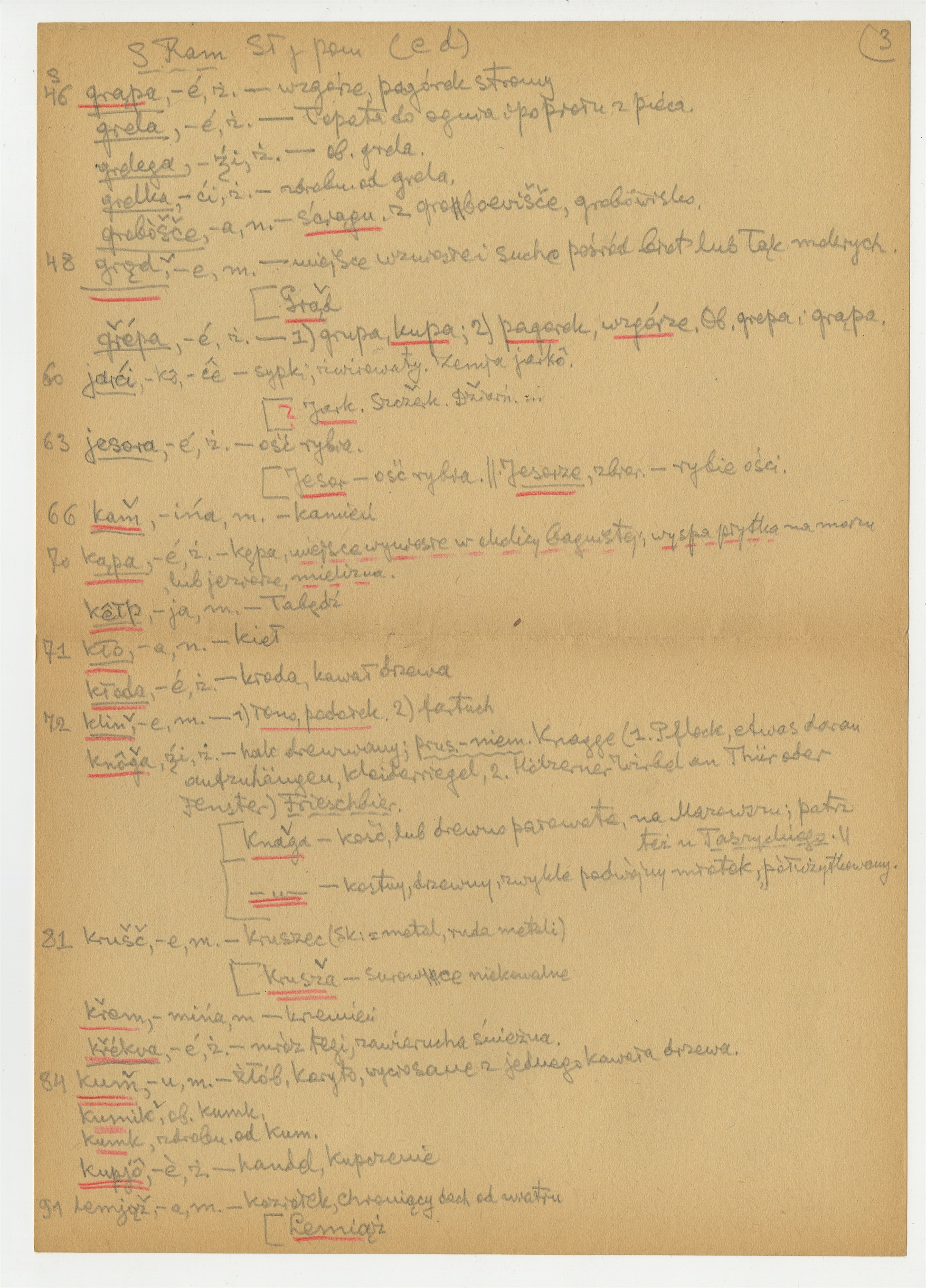 Rękopis wypisów z publikacji S. Ramułta  Słownik języka pomorskiego  Kraków  1893 - strona 3: "grąpa  -é  ż." […] "lemjąž  -a  m."