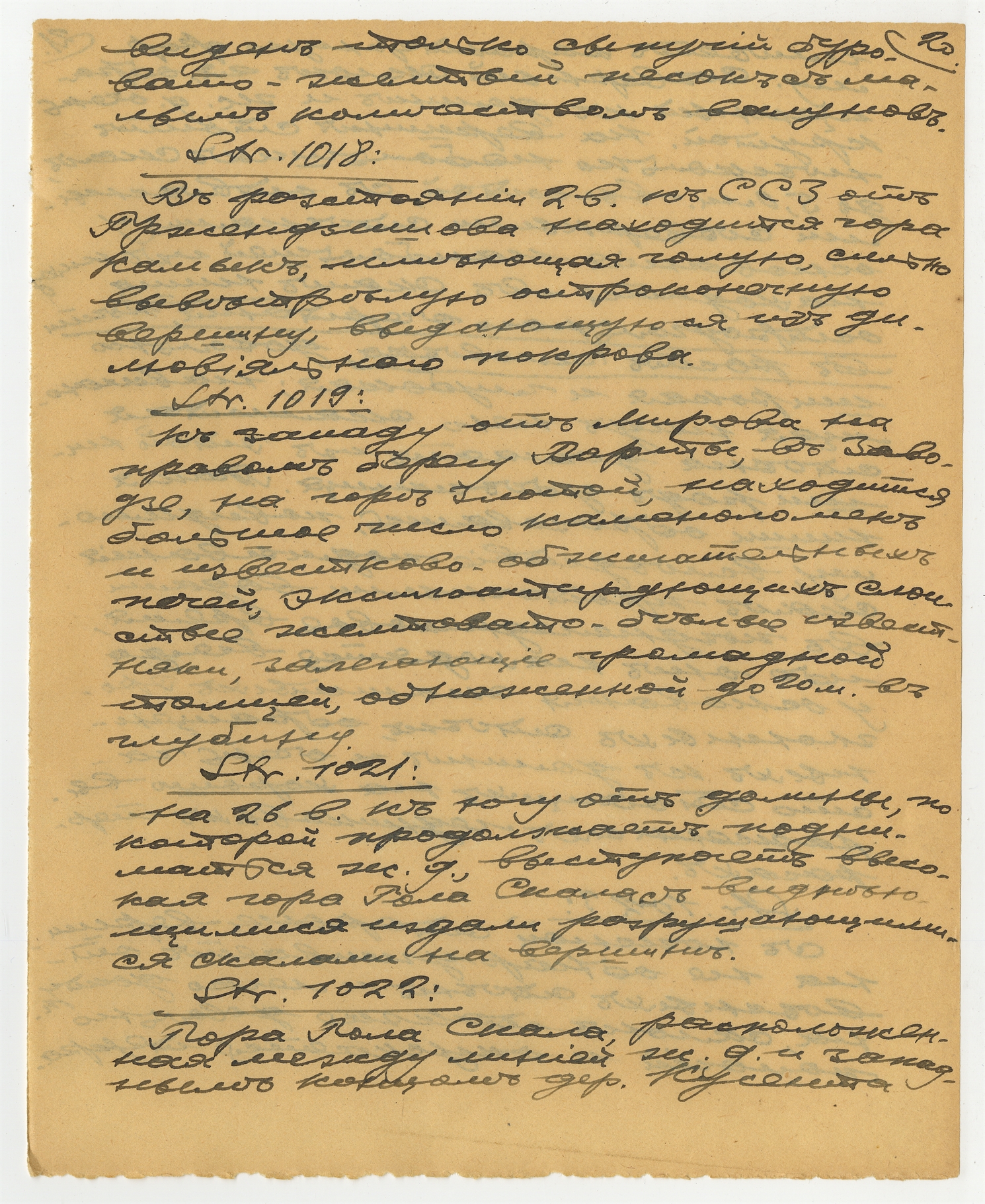 Rękopis - wypisy Stefana Krukowskiego w języku polskim i rosyjskim pt. "Materiały geologiczne do prahistoryi pasma krakowsko-wieluńskiego" z różnych publikacji geologicznych. Strona 20