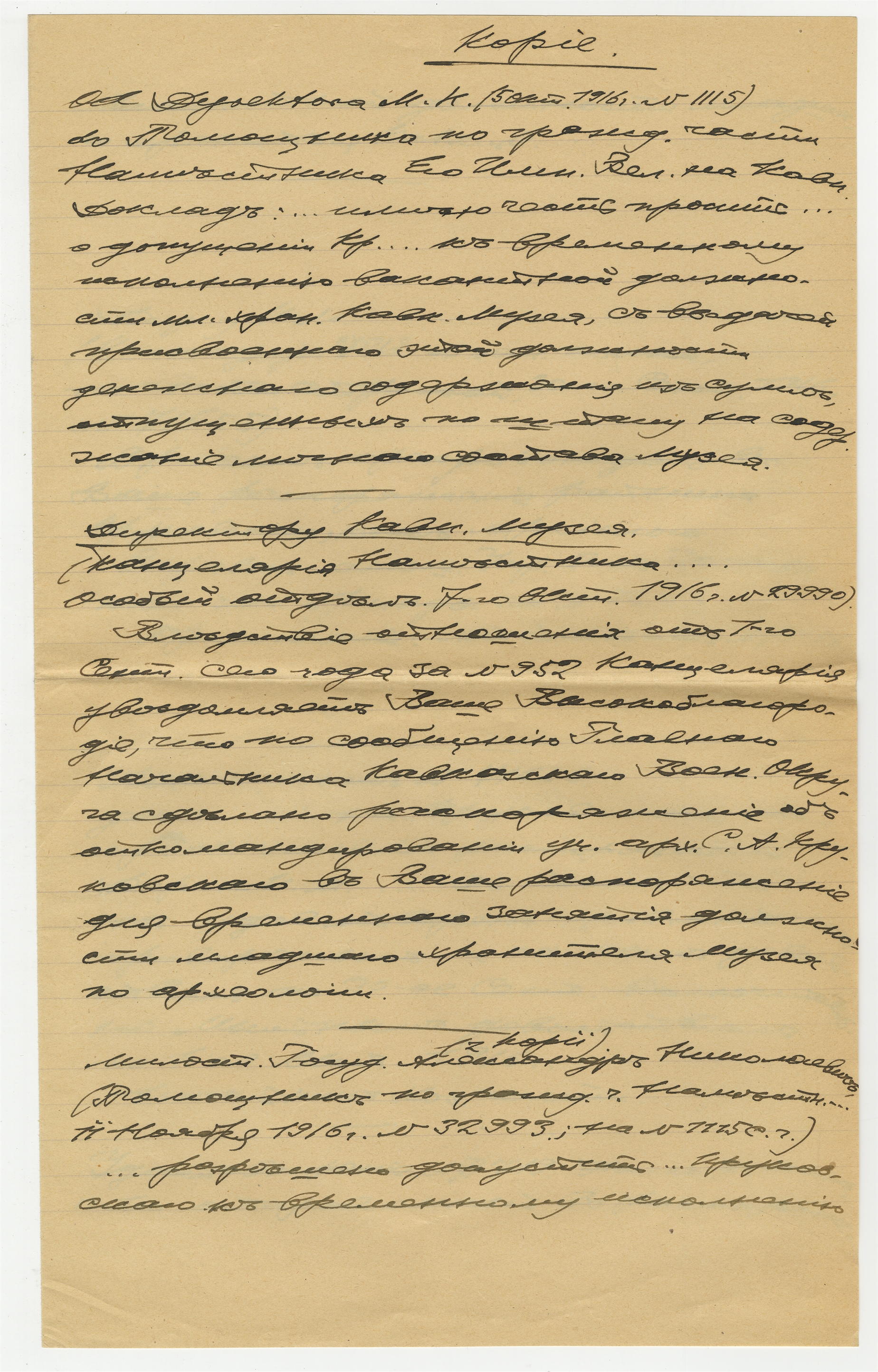 Rękopis - wypisy Stefana Krukowskiego z korespondencji Muzeum Kaukaskiego z lat 1916-1918