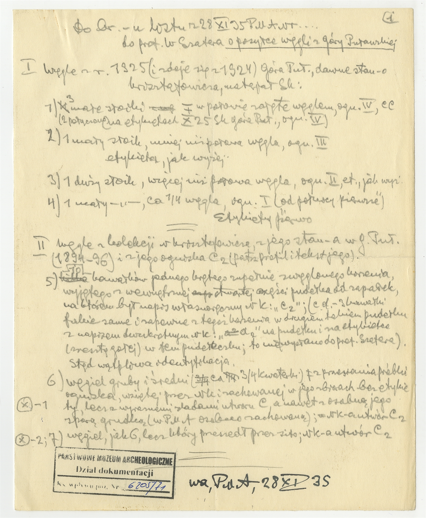 Rękopis - załącznik do brudnopisu listu Stefana Krukowskiego z dnia 28 XII [19]35 roku do W. Szafera "o posyłce węgli z Góry Puławskiej"