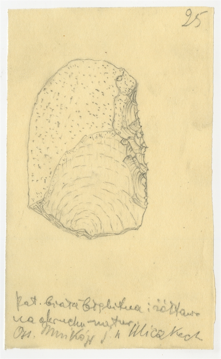 Rysunek odłupka krzemiennego "Mników j. w Uliczkach". Ołówek na kalce