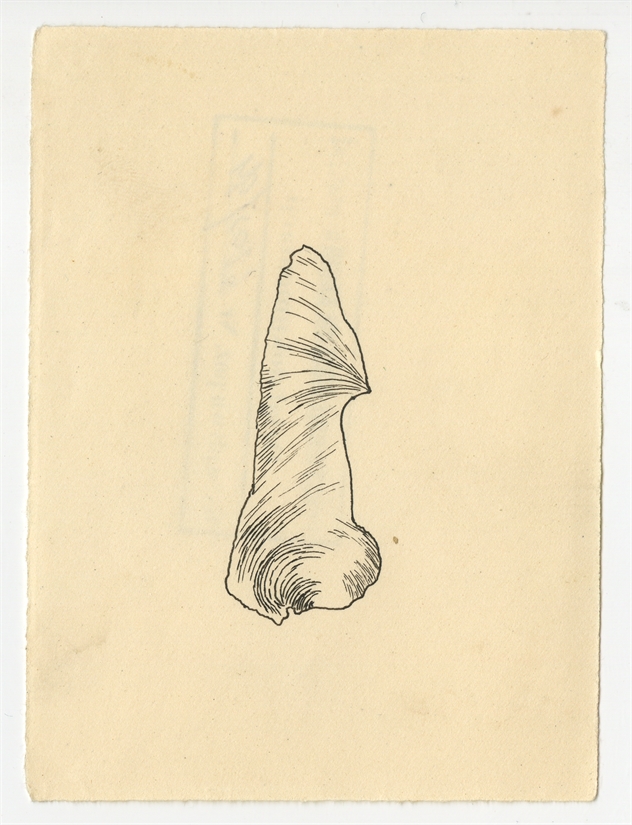 Rysunek zabytku krzemiennego. Tusz na papierze