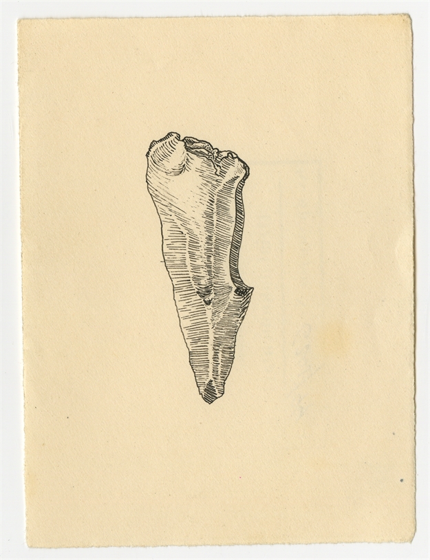 Rysunek zabytku krzemiennego. Tusz na papierze
