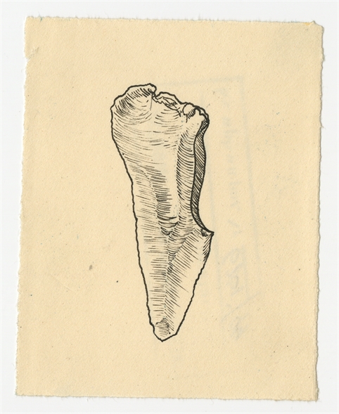 Rysunek zabytku krzemiennego. Tusz na papierze