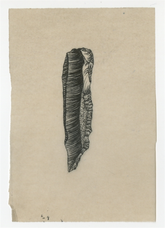 Rysunek zabytku krzemiennego w 1 rzucie. Tusz na kalce