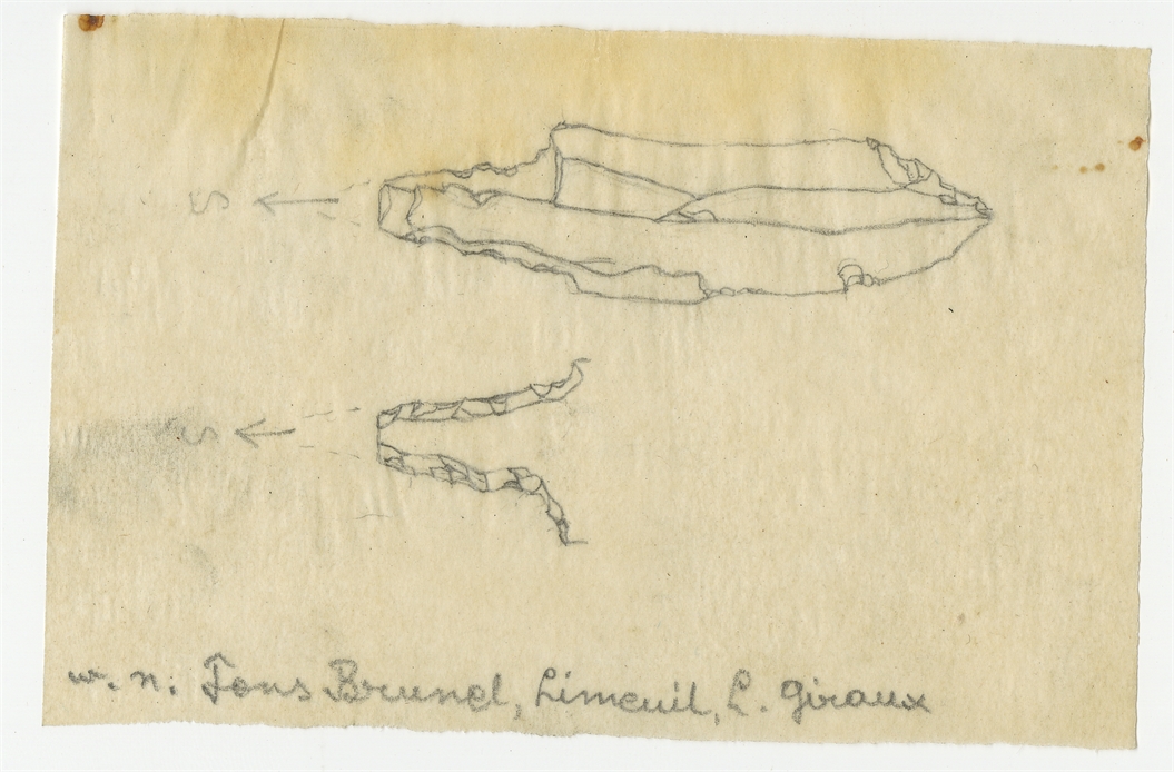 Rysunek zabytku krzemiennego z Fons-Brunel Limenil (w ołówku) z kolekcji L. Giraux.