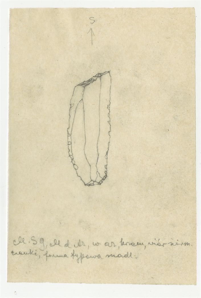 Rysunek zabytku krzemiennego z Mas-d'Azil w ołówku