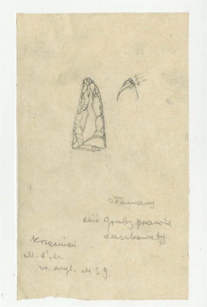 Rysunek zabytku krzemiennego z Mas-d'Azil w ołówku