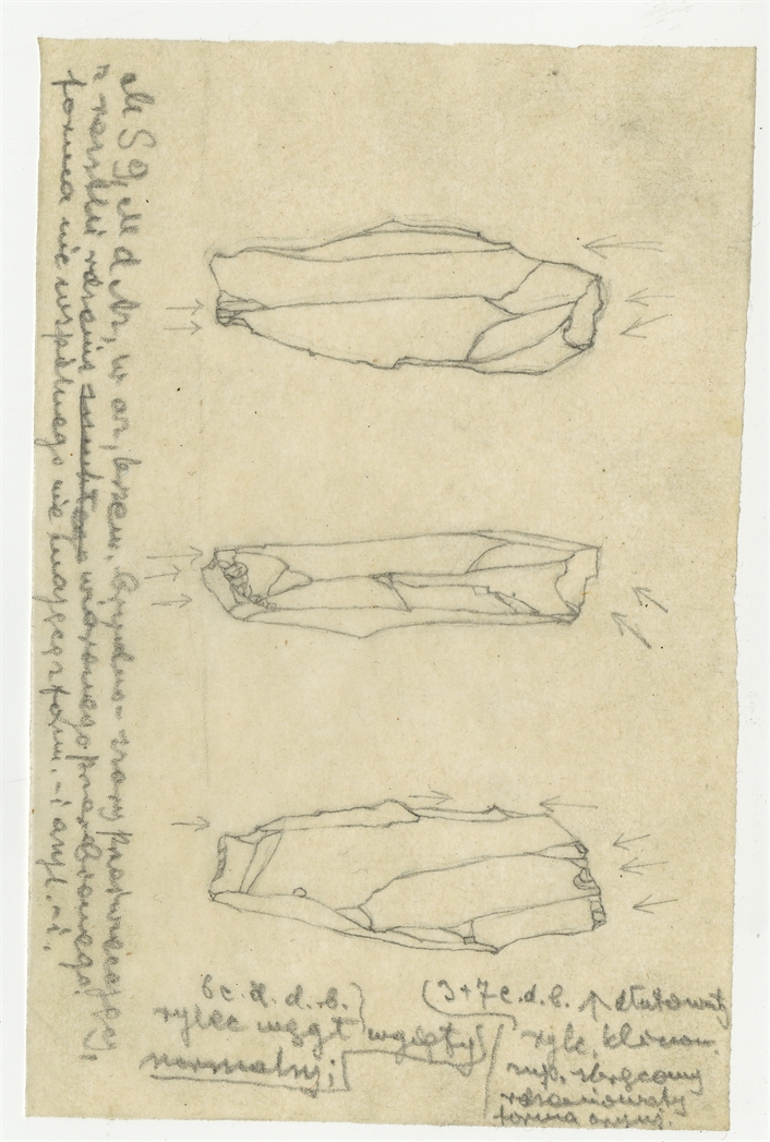 Rysunek zabytku krzemiennego z Mas-d'Azil w ołówku