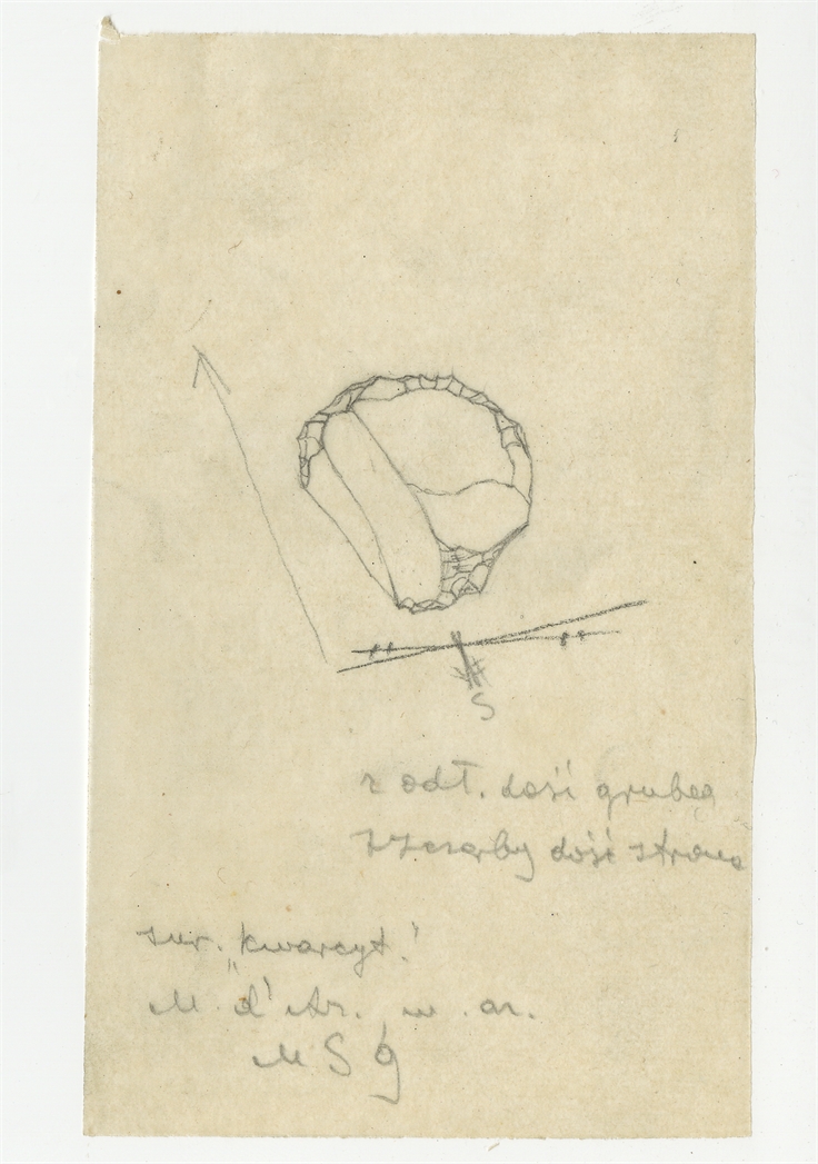 Rysunek zabytku krzemiennego z Mas-d'Azil w ołówku