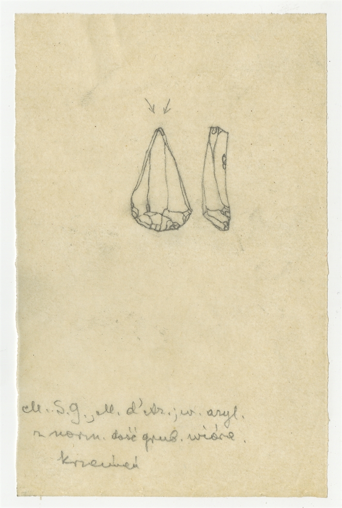 Rysunek zabytku krzemiennego z Mas-d'Azil w ołówku