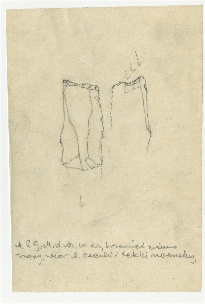 Rysunek zabytku krzemiennego z Mas-d'Azil w ołówku