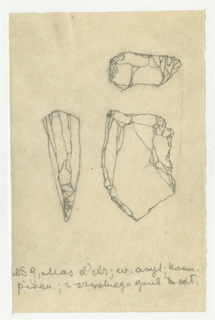 Rysunek zabytku krzemiennego z Mas-d'Azil w ołówku