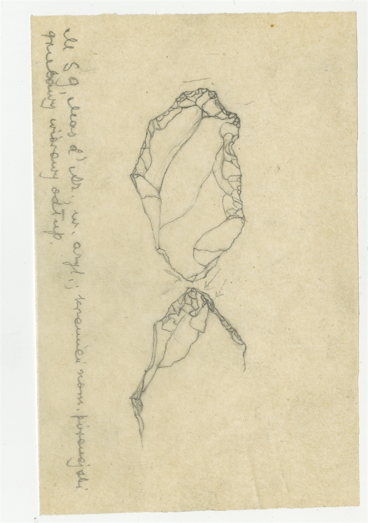 Rysunek zabytku krzemiennego z Mas-d'Azil w ołówku