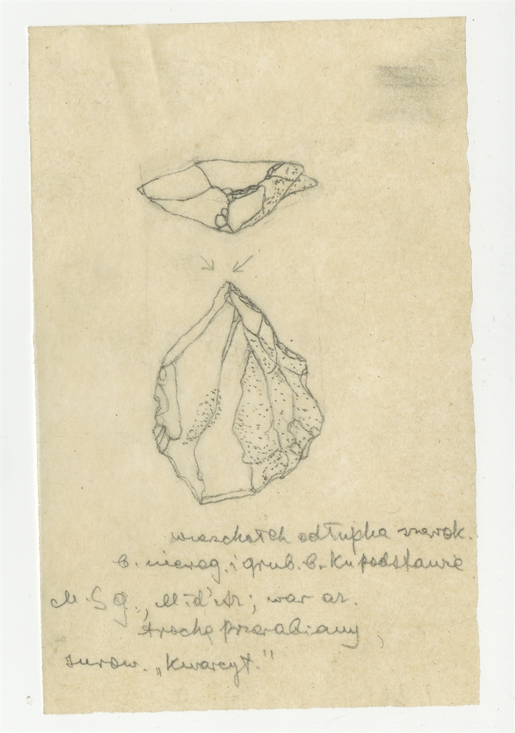 Rysunek zabytku krzemiennego z Mas-d'Azil w ołówku