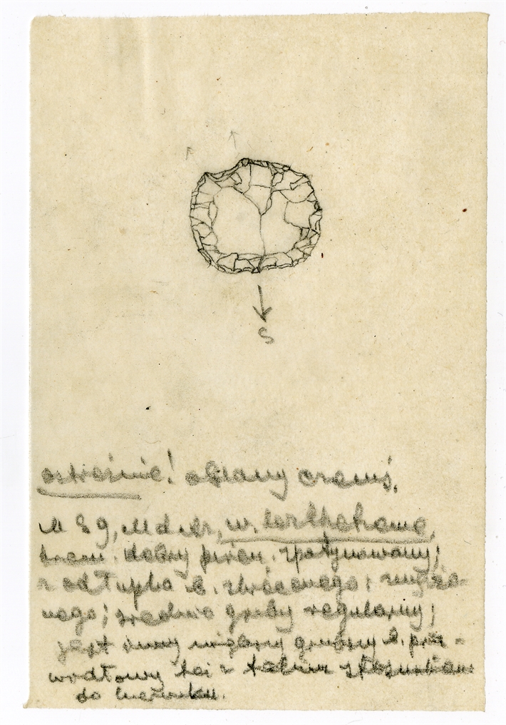 Rysunek zabytku krzemiennego z Mas-d'Azil w ołówku