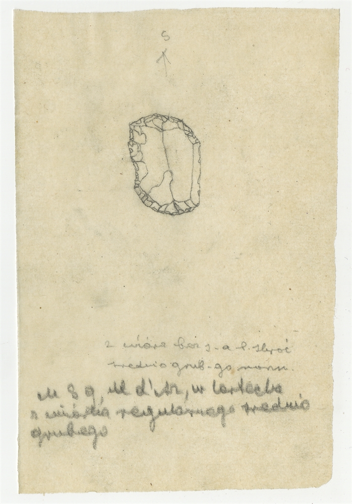 Rysunek zabytku krzemiennego z Mas-d'Azil w ołówku