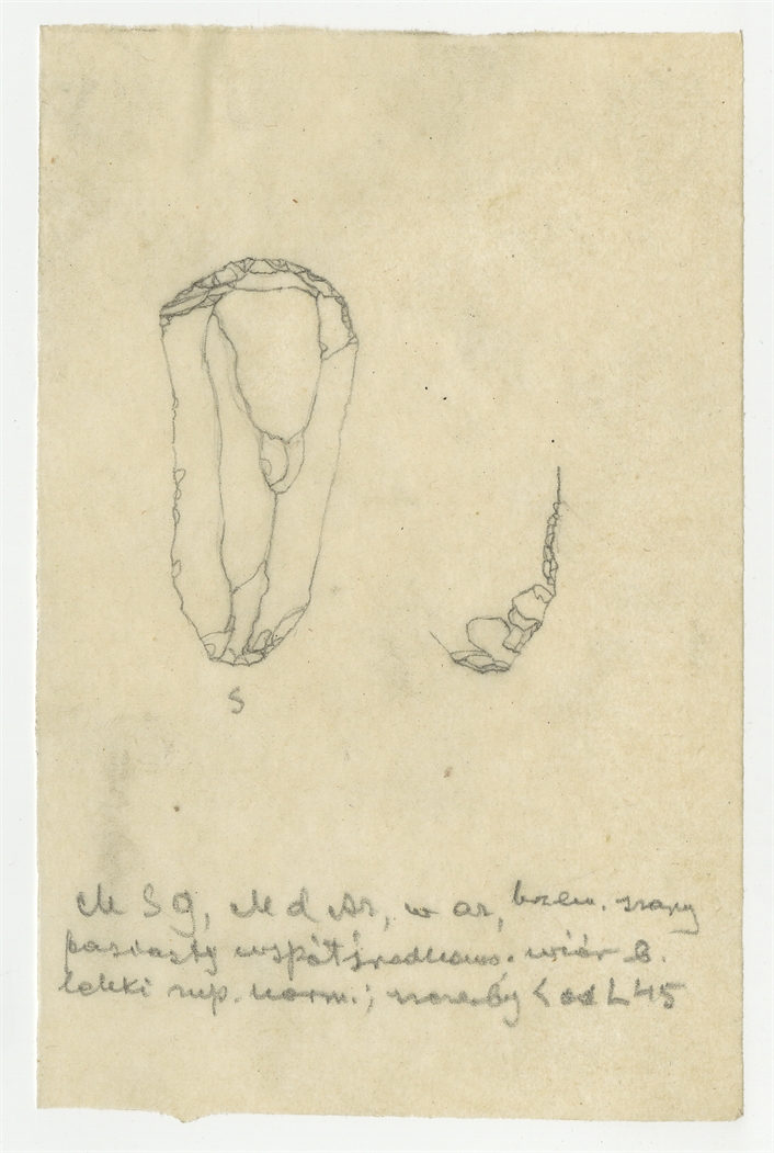 Rysunek zabytku krzemiennego z Mas-d'Azil w ołówku