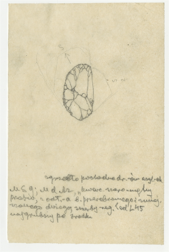 Rysunek zabytku krzemiennego z Mas-d'Azil w ołówku