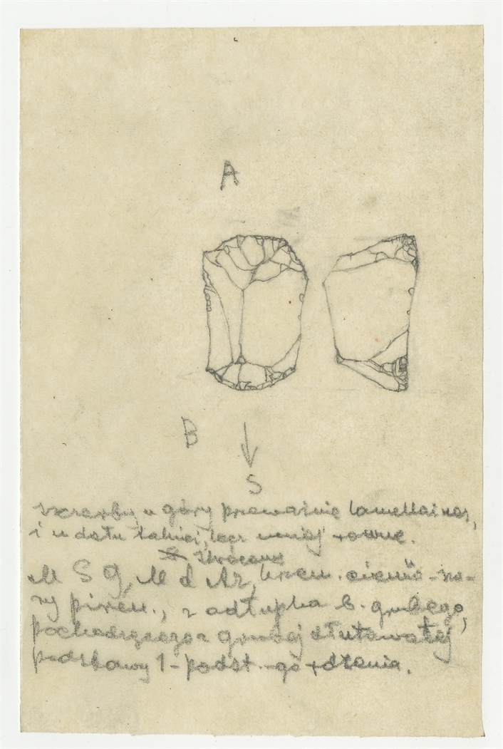 Rysunek zabytku krzemiennego z Mas-d'Azil w ołówku
