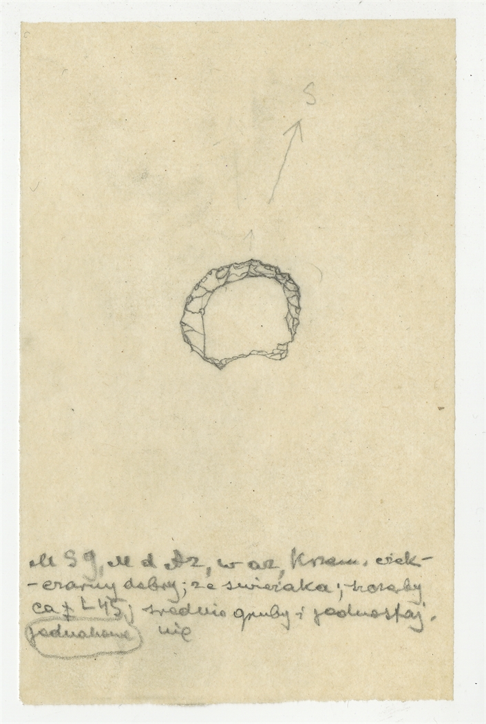 Rysunek zabytku krzemiennego z Mas-d'Azil w ołówku