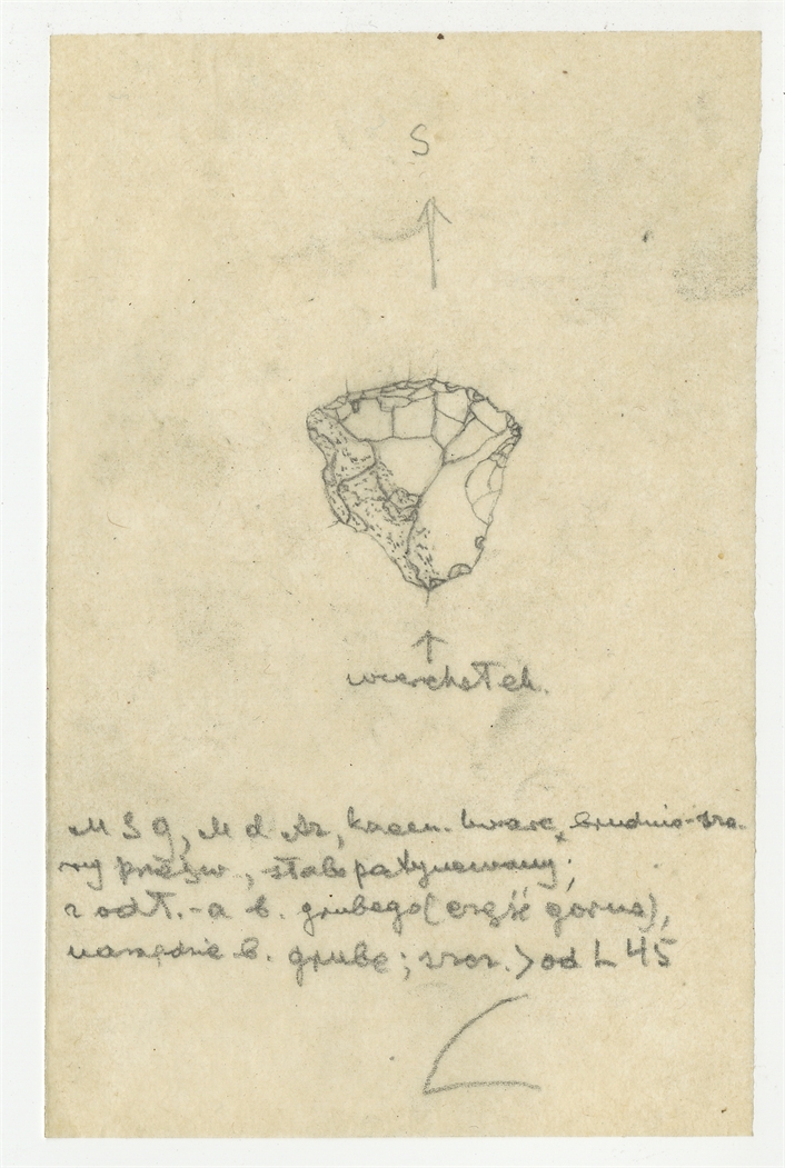 Element 74 - Rysunek zabytku krzemiennego z Mas-d'Azil w ołówku