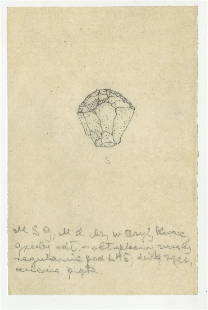 Rysunek zabytku krzemiennego z Mas-d'Azil w ołówku