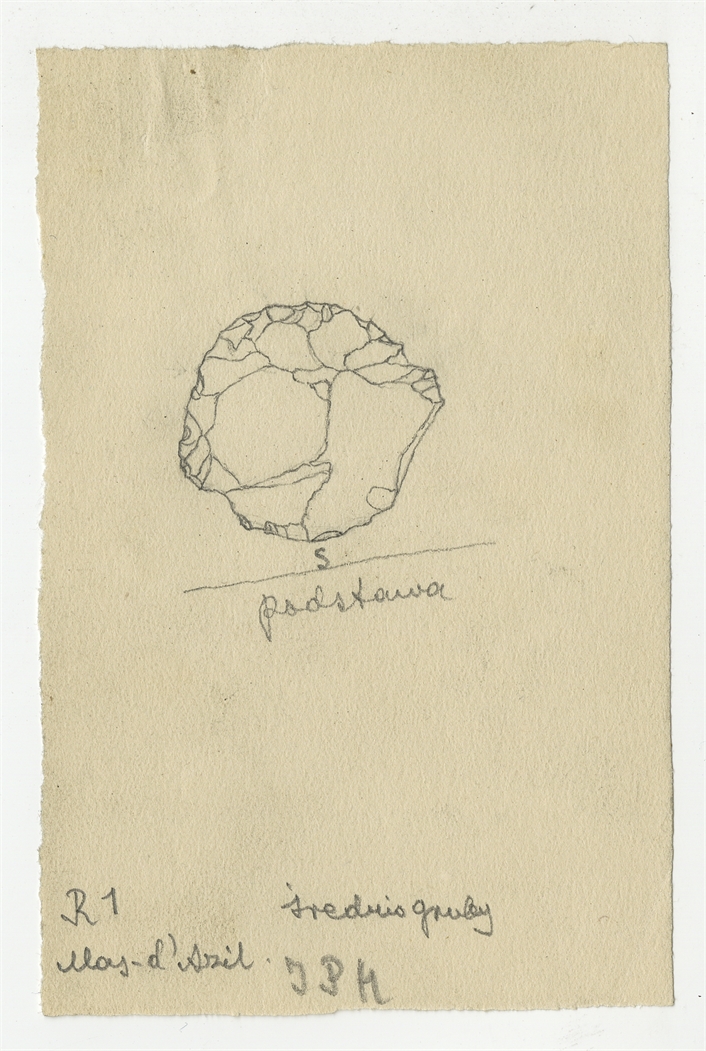 Rysunek zabytku krzemiennego z Mas-d'Azil w ołówku