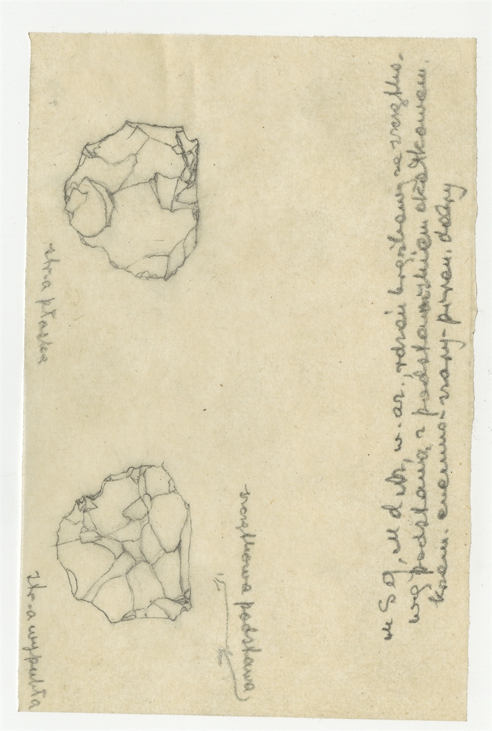 Rysunek zabytku krzemiennego z Mas-d'Azil w ołówku
