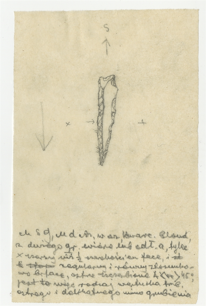 Rysunek zabytku krzemiennego z Mas-d'Azil w ołówku
