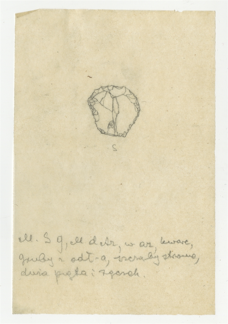 Rysunek zabytku krzemiennego z Mas-d'Azil w ołówku